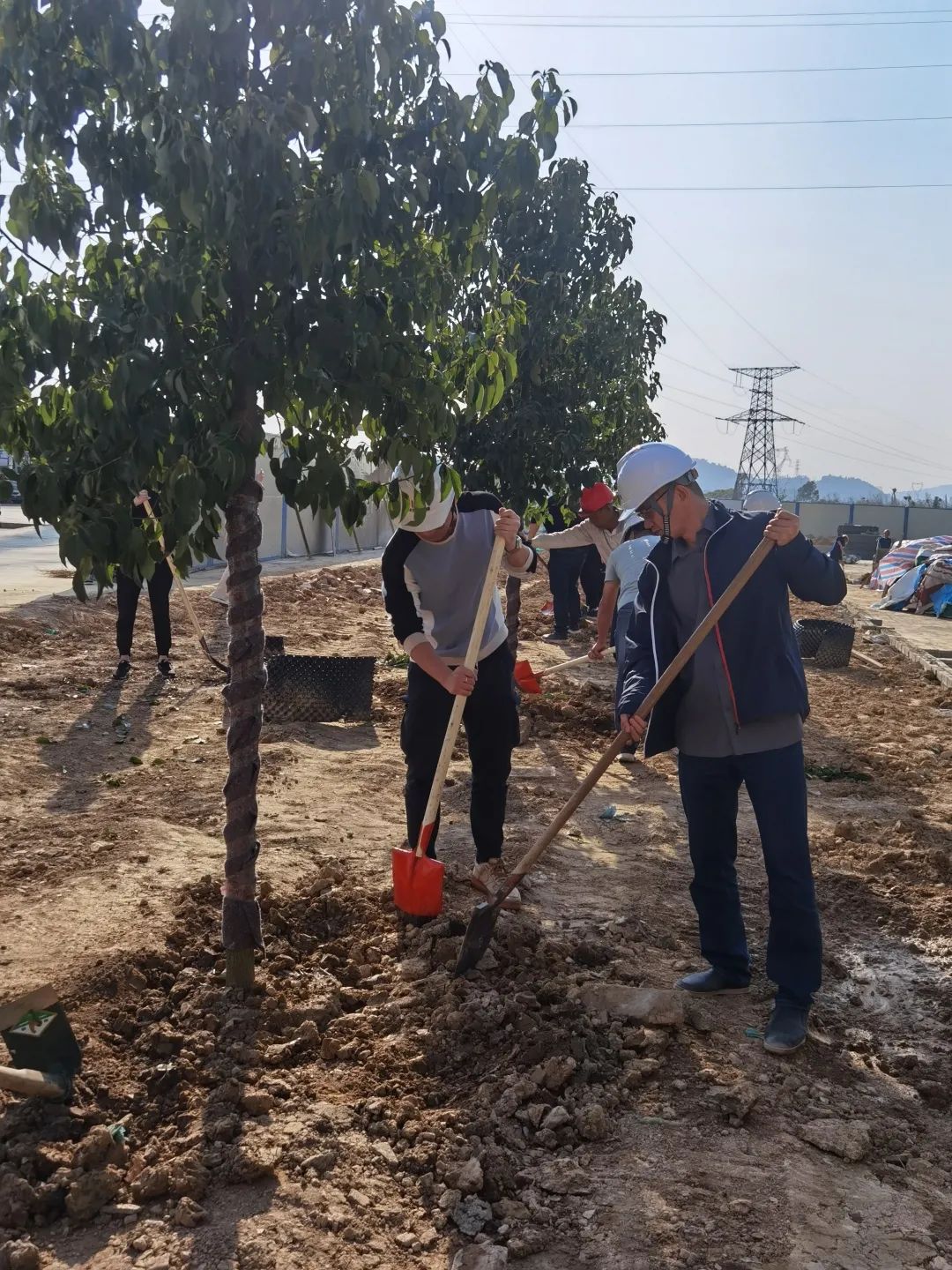 Ö²Ê÷ÏÖ³¡£¬¸÷ÈËÒ»±ßÅàÍÁ£¬Ò»±ßѧϰֲÊ÷µÄ¾­Ñé¼¼ÇÉ¡£·×Æç»á¶ù£¬Ô­±¾¿Õ¿õµÄÏîÄ¿ÂÌ»¯¿Õλ¾Í±äµÃÉú»ú°»È»¡£