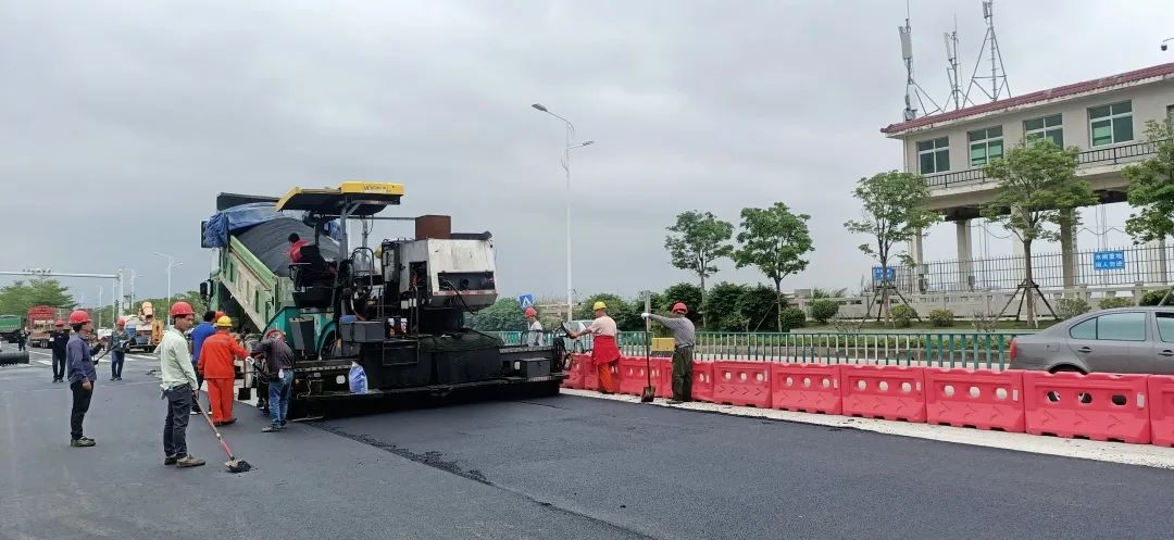 新利18国投公司坚持“高效施工”原则,积极协调参建各方克服边通行边施工等倒运因素,仅耗时一个月就完成该路段左幅路面施工并实时投入使用。右幅路面建设受新冠疫情影响,停工将近两个月。为抢抓工期进度,新利18国投公司协调各方增加人员及机械投入,并组织研究施工新工艺新技术,积极引进超薄一体摊铺机s1800-2sj,接纳高黏改性乳化沥青对桥面进行摊铺,将流水施工改为并行施工,快速跟进,缩短工期。在包管宁静和质量的前提下,各参建单位主动加班加点,仅耗时一个月就抢回因疫情延长的工期完成右幅路面施工,准时恢复双向通车。